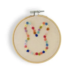Χειροποίητο καδράκι-λαγουδάκι 13 εκατοστά, κεντημένο στο χέρι με πολύχρωμες λεπτομέρειες.