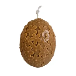 100% Φυτικό κερί ελαιοκράμβης με βαμβακερό φυτίλι σε σχήμα Αυγό με ανάγλυφα λουλούδια σε μικρό ή μεγάλο μέγεθος .