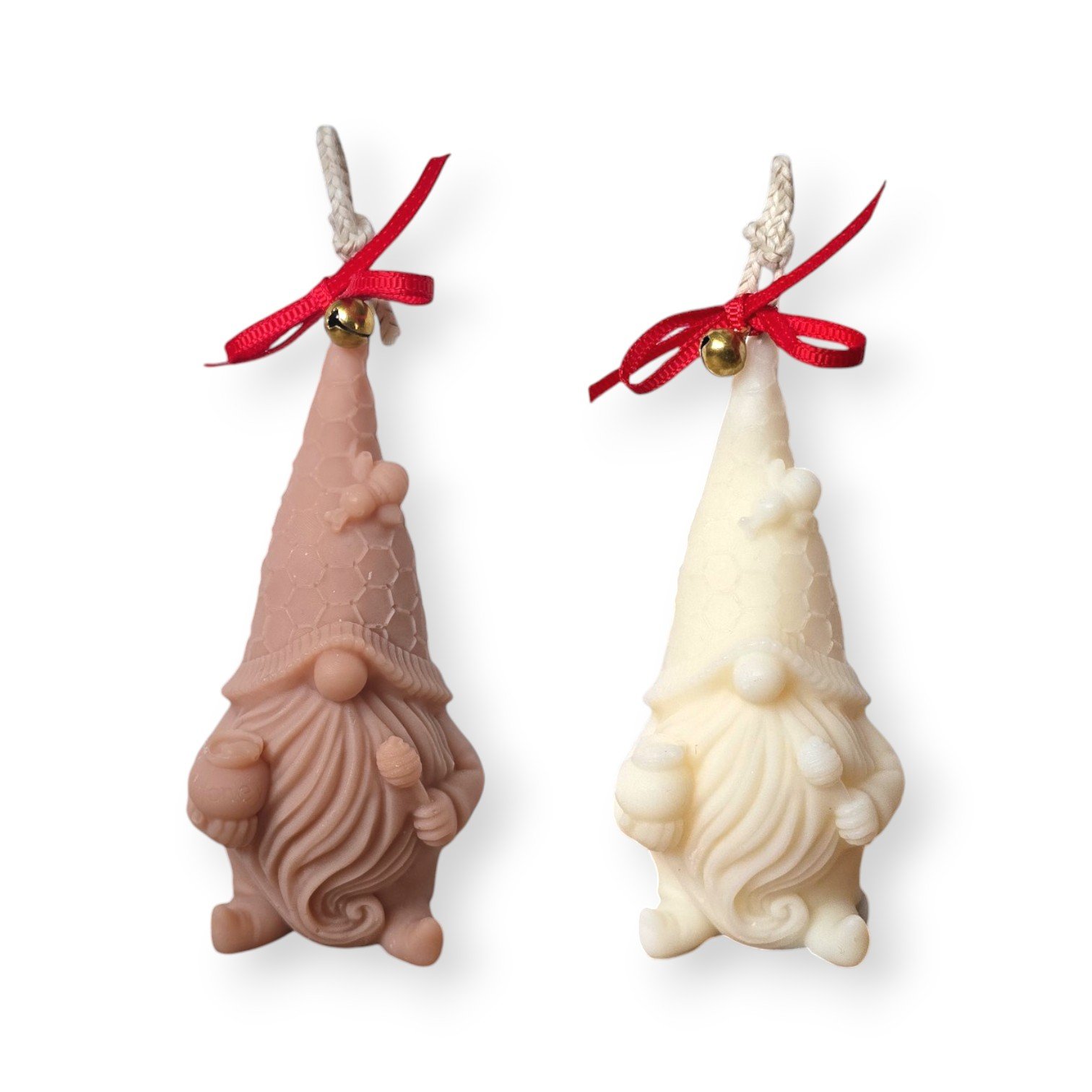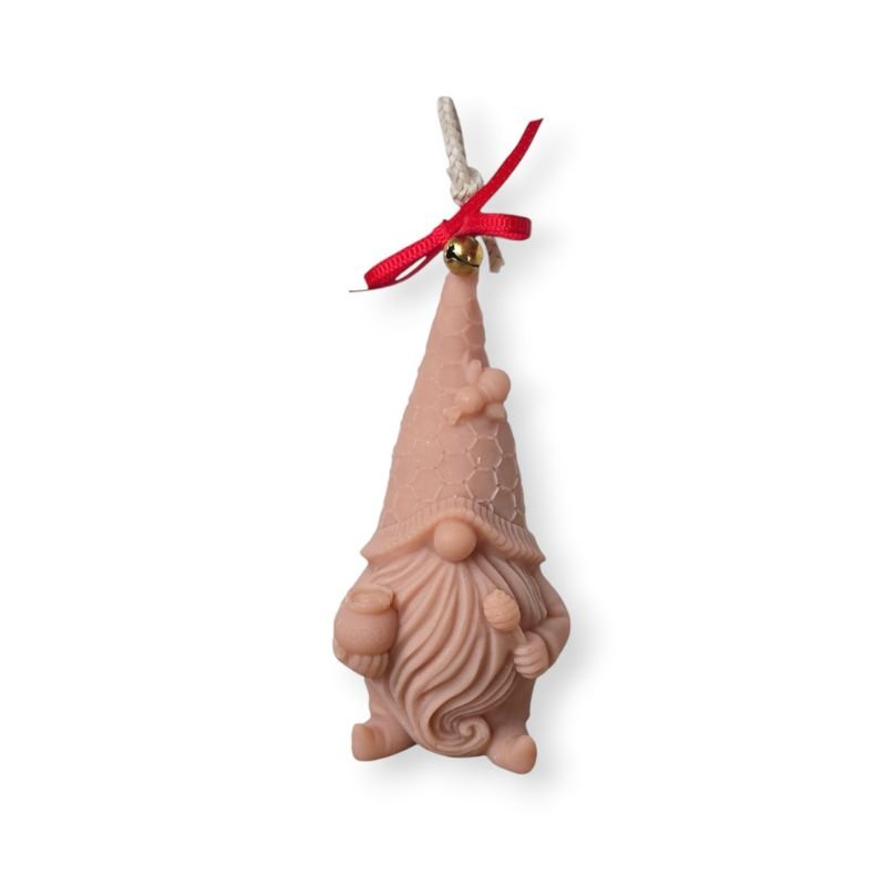 100% Φυτικό κερί ελαιοκράμβης με βαμβακερό φυτίλι σε σχήμα Χριστουγεννιάτικος Νάνος με ψηλό σκούφο.