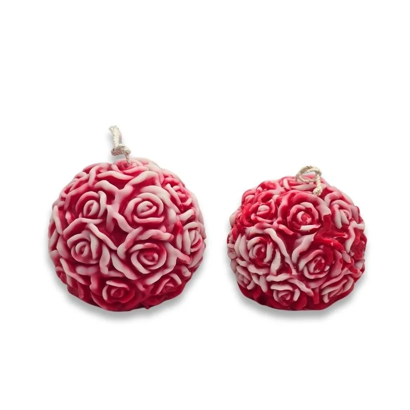 100% Φυτικό λευκό κερί ελαιοκράμβης με βαμβακερό φυτίλι σε σχήμα μπάλας με τριαντάφυλλα σε μικρό ή μεσαίο μέγεθος σε κόκκινο/λευκό.
