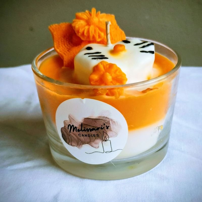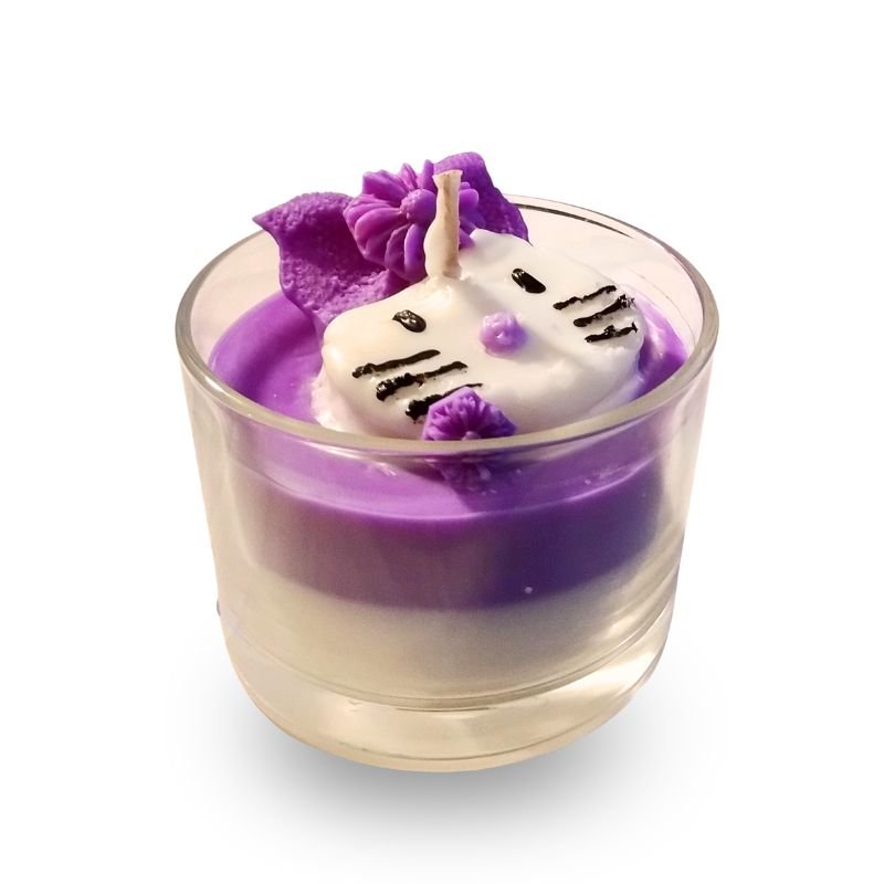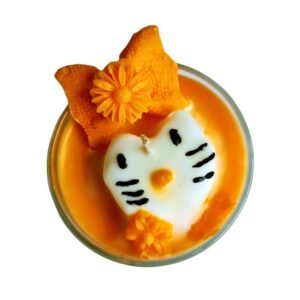 Δώστε μια παιχνιδιάρικη αλλά και κομψή νότα στον χώρο σας με αυτό το χειροποίητο κερί σόγιας, διακοσμημένο με την χαριτωμένη μορφή της hello kitty, σχεδιασμένη στο χέρι, σε όμορφα, ζωντανά χρώματα. Προσφέρει μία ζεστή ατμόσφαιρα και ένα διακριτικό άρωμα, που αναδεικνύει την αισθητική του χώρου σας.