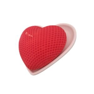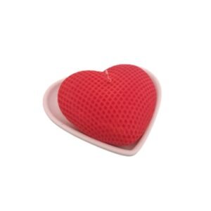 Καρδιά κόκκινη από φυτικό κερί με άρωμα ‘πούδρα’ και βάση σε σχήμα καρδιάς κατασκευασμένη από πορσελάνη σε λευκό χρώμα.