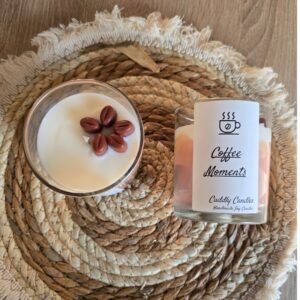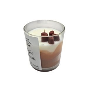 100% Φυτικό κερί σόγιας με βαμβακερό φυτίλι σε γυάλινο ποτήρι με κόκκους καφέ και άρωμα Coffee Arabica.