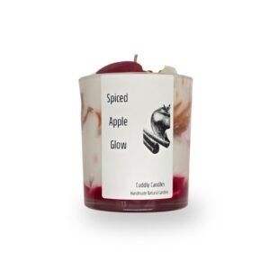 100% Φυτικό κερί σόγιας με 1 βαμβακερό φυτίλι σε γυάλινο ποτήρι με τρίχρωμη σαντιγί, φθινοπωρινά διακοσμητικά wax melts, glitter και άρωμα Μήλο-Κανέλα.
