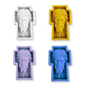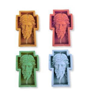 Κέρινο διακοσμητικό σε σχήμα σταυρού, με την μορφή Του Εσταυρωμένου. Από 100% φυτικό κερί ελαιοκράμβης. Σε διάφορα χρώματα και αρώματα.