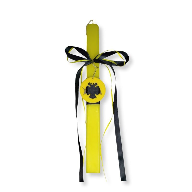 Κίτρινη ή μαύρη αρωματική πλακέ Λαμπάδα 35εκ, με μπρελόκ τον δικέφαλο.