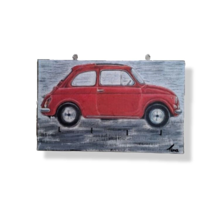Κλειδοθήκη ξύλινη κρεμαστή τεσσάρων θέσεων, σχέδιο ‘αυτοκίνητο’.