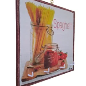 Κλειδοθήκη ξύλινη κρεμαστή τεσσάρων θέσεων, σχέδιο ‘spaghetti’. Δημιουργία με την τεχνική ντεκουπάζ και ζωγραφική με ακρυλικά χρώματα.