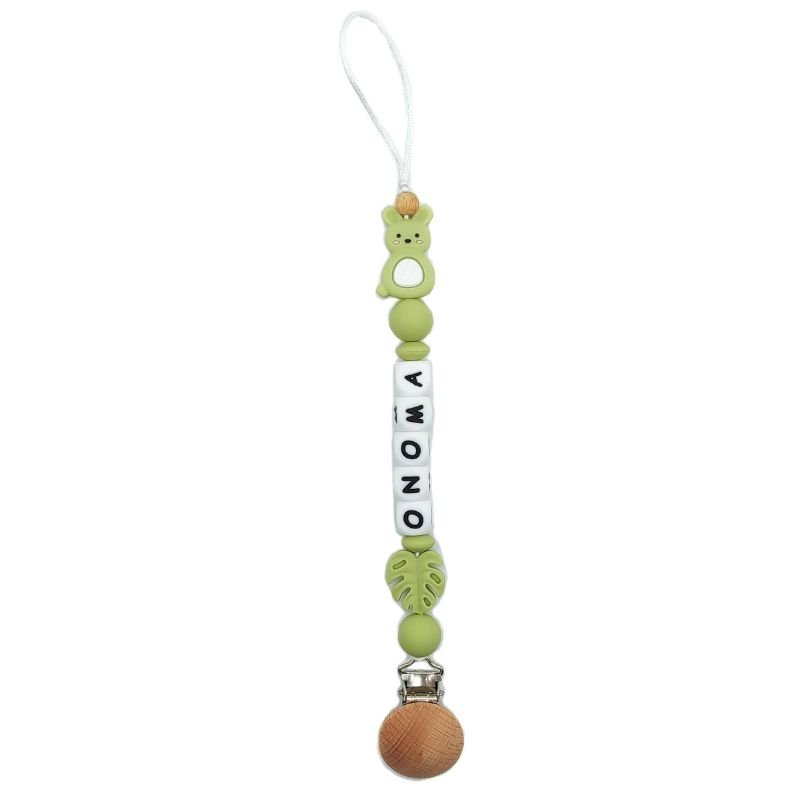 Διαθέτει χαριτωμένο σχέδιο με λαγουδάκι και χάντρες σιλικόνης, ενώ το όνομα του παιδιού δίνει μια ξεχωριστή, προσωποποιημένη πινελιά.