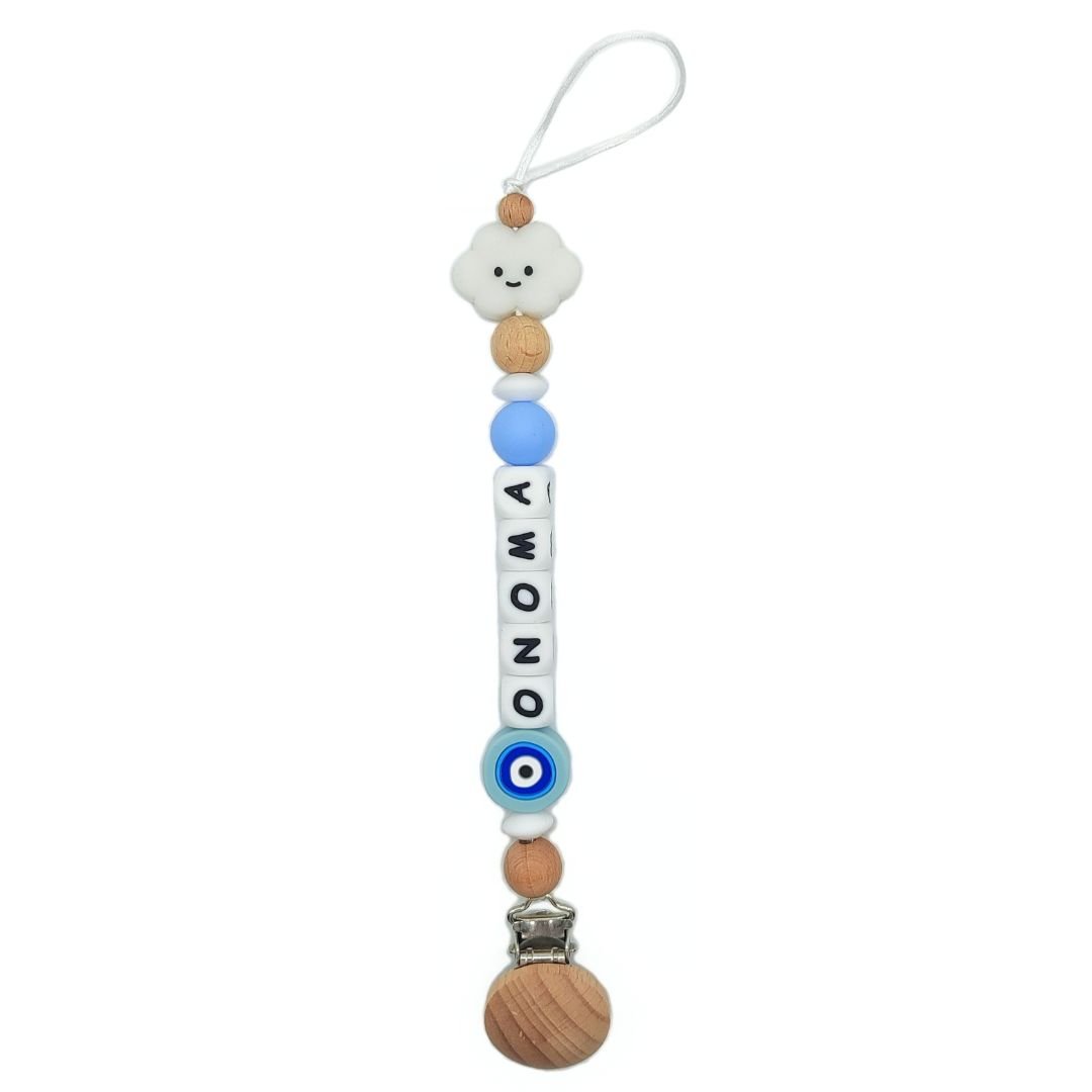 Κλιπ πιπίλας με όνομα και χάντρες σιλικόνης – Συννεφάκι