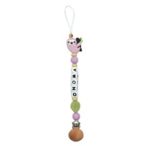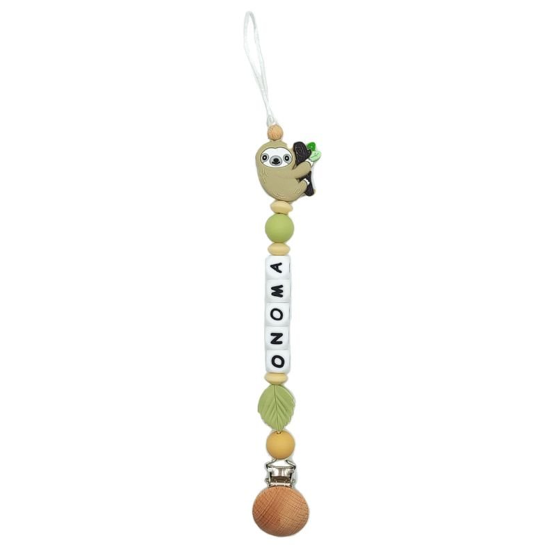 Διαθέτει χαριτωμένο σχέδιο με βραδύποδα και χάντρες σιλικόνης, ενώ το όνομα του παιδιού δίνει μια ξεχωριστή, προσωποποιημένη πινελιά.