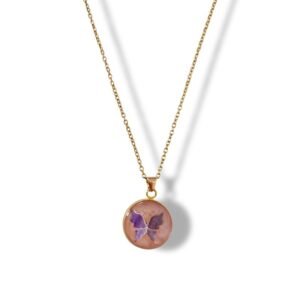 Κολιέ με μενταγιόν από υγρό γυαλί και πεταλούδες στο εσωτερικό τους ή πολύχρωμα πετράδια.