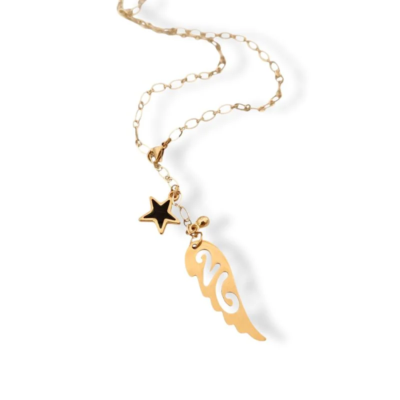 Κολιέ γούρι 2026 ατσάλινο φτερό με αστέρι από σμάλτο σε ατσάλινη αλυσίδα