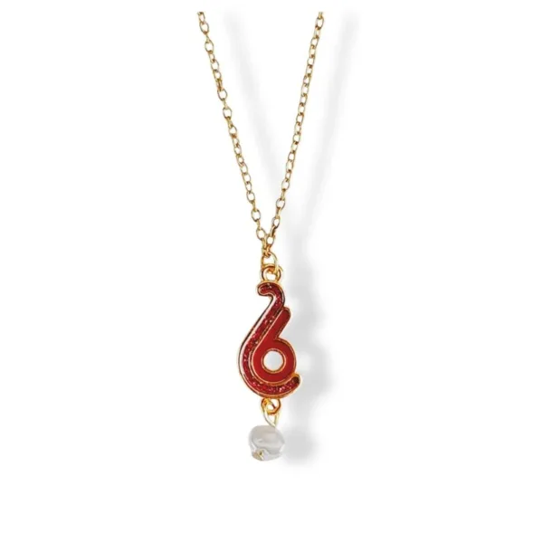 Κολιέ από ατσάλινη αλυσίδα με επίχρυσο γούρι 26 glitter σμάλτο με μπαρόκ μαργαριτάρι.