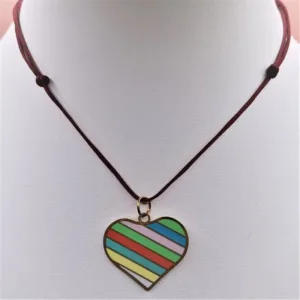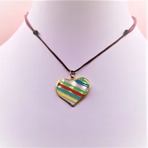 Κρεμαστή πολύχρωμη ατσάλινη καρδιά σε κορδόνι κόκκινο ρυθμιζόμενο μήκους. Χαρούμενη καρδούλα που ταιριάζει σε κάθε στυλ. Δυνατότητα επιλογής άλλου χρώματος κορδονιού: μαύρο, καφέ, λευκό, λιλά, έντονο μοβ