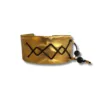 Κολιέ από ορείχαλκο, με επικάλυψη υγρού γυαλιού, ζωγραφισμένο και διαμορφωμένο στο χέρι, σε χρυσό-μαύρο. Το κορδόνι του είναι μαύρο αυξομειούμενο.