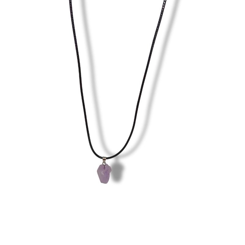 Κολιέ με αμέθυστο και κορδόνι μαύρο.