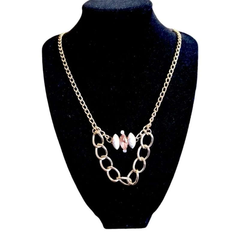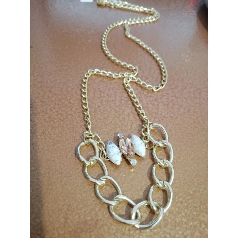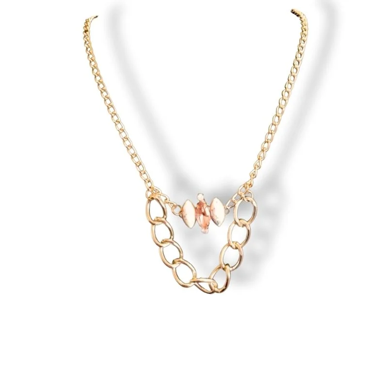 Κολιέ με χρυσή αλυσίδα και μοτίφ με πέτρες