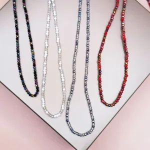 Minimal κολιέ με μονή σειρά από κρυσταλλάκια 3mm. Μήκος 45εκ με προέκταση ως 50 εκ. Φοριέται μόνο του ή σε συνδυασμό με άλλα κοσμήματα.