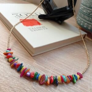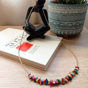 Κολιέ με χρυσές γυάλινες κοντερίες και πολύχρωμα τσιπς κοχυλιού.