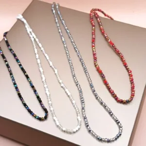 Minimal κολιέ με μονή σειρά από κρυσταλλάκια 3mm. Μήκος 45εκ με προέκταση ως 50 εκ. Φοριέται μόνο του ή σε συνδυασμό με άλλα κοσμήματα.