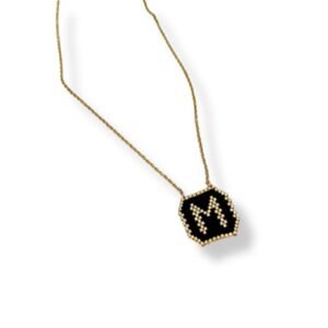 Κολιέ από ατσάλινη αλυσίδα με χάντρες χρυσές κ μαύρες φτιάχνουν αυτό όμορφο μοτίβο το μονόγραμμα!!!