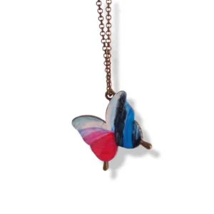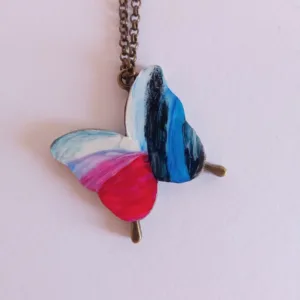 Κολιέ πεταλούδα μπρονζέ, πολύχρωμο, χειροποίητο με υγρό γυαλί και μπρονζέ αλυσίδα.