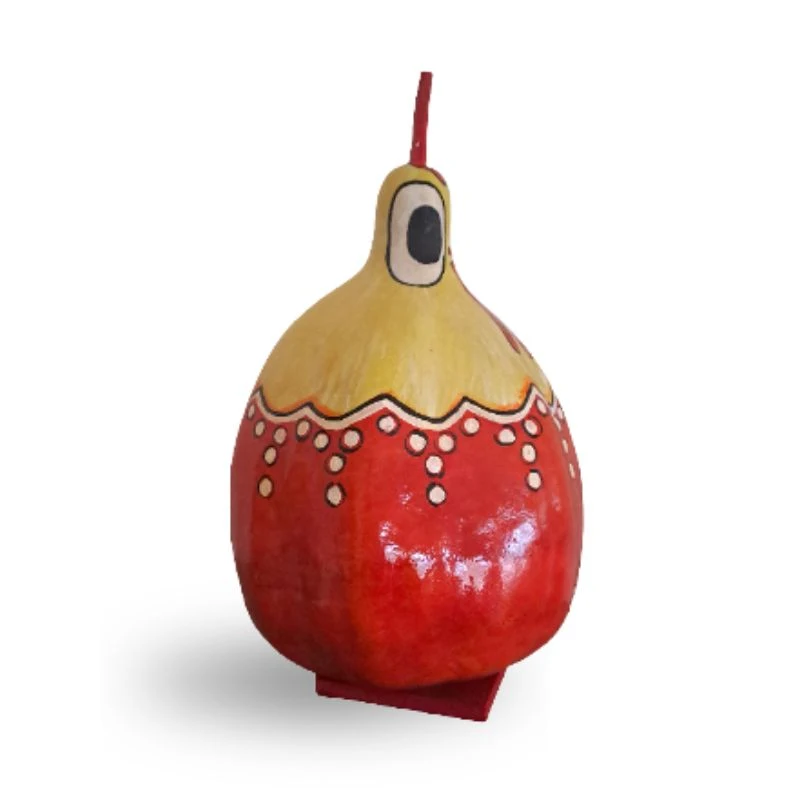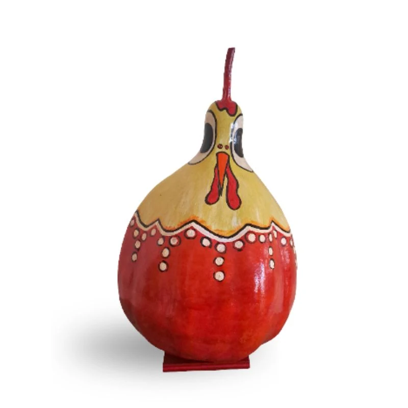 Η κότα Ιουλία ζωγραφισμένη με ακρυλικά χρώματα πάνω σε αποξηραμένη διακοσμητική κολοκύθα.