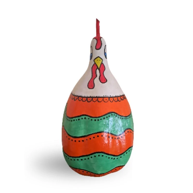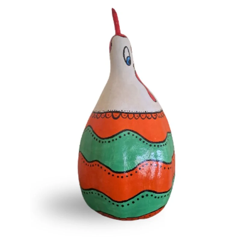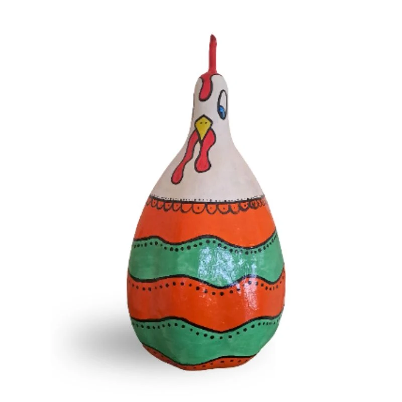 Η κότα Μίνα ζωγραφισμένη με ακρυλικά χρώματα πάνω σε αποξηραμένη διακοσμητική κολοκύθα.