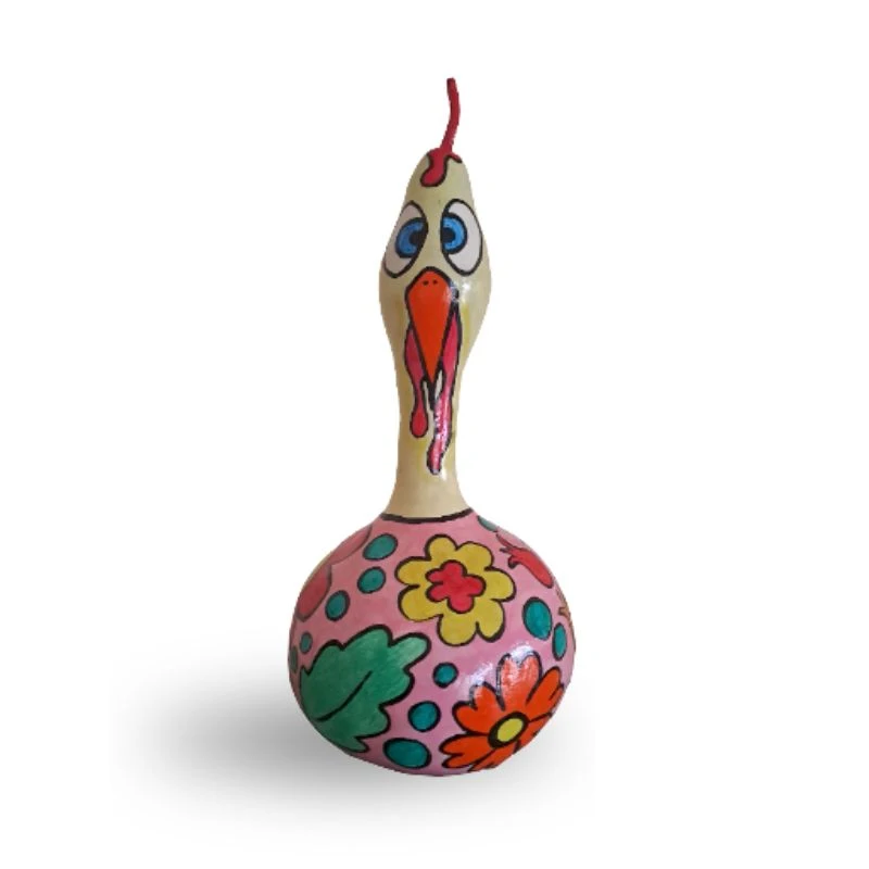 Η κότα Ρόζα ζωγραφισμένη με ακρυλικά χρώματα πάνω σε αποξηραμένη διακοσμητική κολοκύθα.