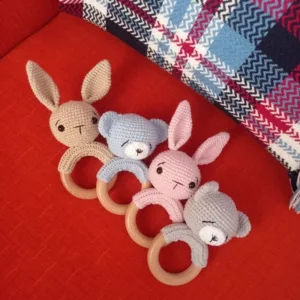 Κουδουνίστρες αρκουδάκια και λαγουδάκια με μασητικό κρίκο οδοντοφυΐας.