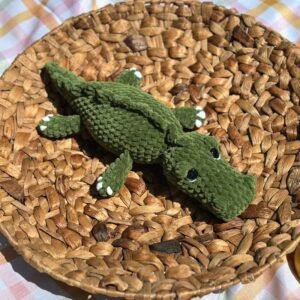 Γνωρίστε το πιο γλυκό και ακίνδυνο αλιγατοράκι που θα λατρέψουν μικροί και μεγάλοι! Πλεγμένος στο χέρι με υπέροχο βελούδινο νήμα σε βαθύ πράσινο χρώμα και παιχνιδιάρικες λεπτομέρειες, είναι έτοιμος να γίνει ο αχώριστος φίλος των παιδιών και να προσφέρει άπειρες αγκαλιές.