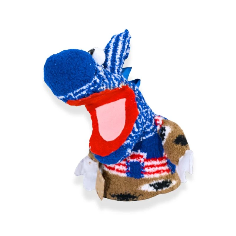 Καλτσόκουκλα τύπου muppet που έχει πίσω στην πλάτη μάνταλο για να ανοιγοκλείνει το στόμα της. Πατώντας το μάνταλο ανοίγει το στόμα της και έτσι η κούκλα ζωντανεύει και μπορεί να μιλήσει, να τραγουδήσει, να παίξει. Στέκεται στο τραπέζι χωρίς να πέφτει γιατί είναι επιδαπέδια.