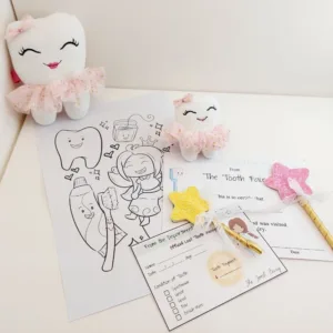 Έρχεται με χρωμοσελίδα νεράιδα των δοντιών, πιστοποιητικό παράδοσης δοντιού και απόδειξη από την νεράιδα.