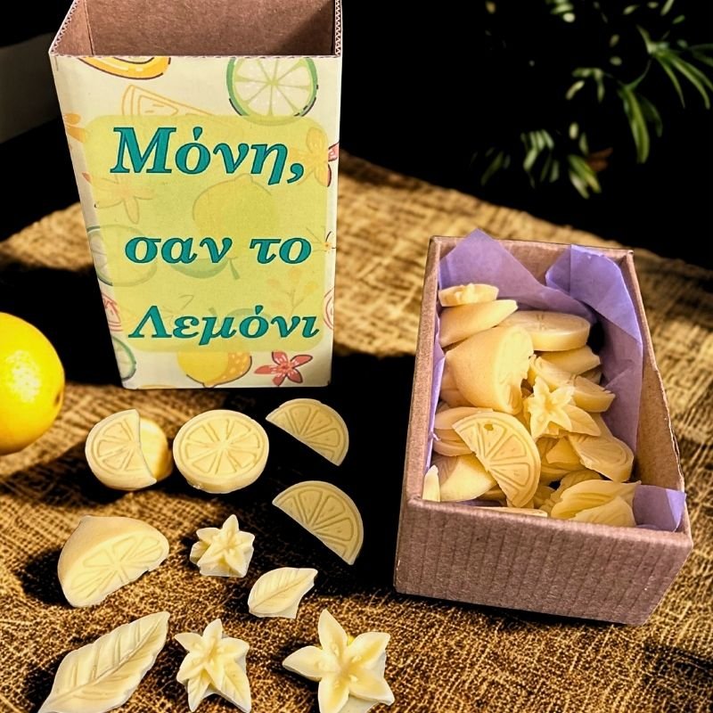 Κουτάκια με wax melts ”Μόνη σαν το λεμόνι”