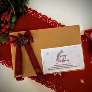 Μέσα του θα βρεις ένα καυστήρα (melter) 🔥, 80g wax melts ❄️, ένα αρωματικό αυτοκινήτου (car diffuser) 🚗✨, ένα λαμπερό Χριστουγεννιάτικο γούρι (Christmas charm) 🎄 και ένα μυστικό δωράκι (surprise gift) 🎅🎁