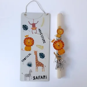 Λαμπάδα αρωματική με ξύλινο μπρελόκ και ξύλινη πλάτη, Σαφάρι.