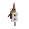 Μπλε λαμπάδα (24εκ.) με ξύλινο στοιχείο μουστάκι και κορδέλες διακόσμησης.