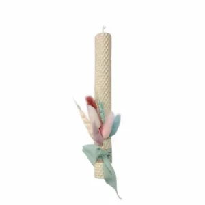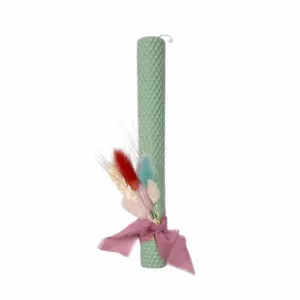 Χειροποίητες αρωματικές λαμπάδες 25 εκ. από μελισσοκέρι με αποξηραμένα άνθη σε τρία χρώματα για να διαλέξετε αυτό που σας αρέσει.