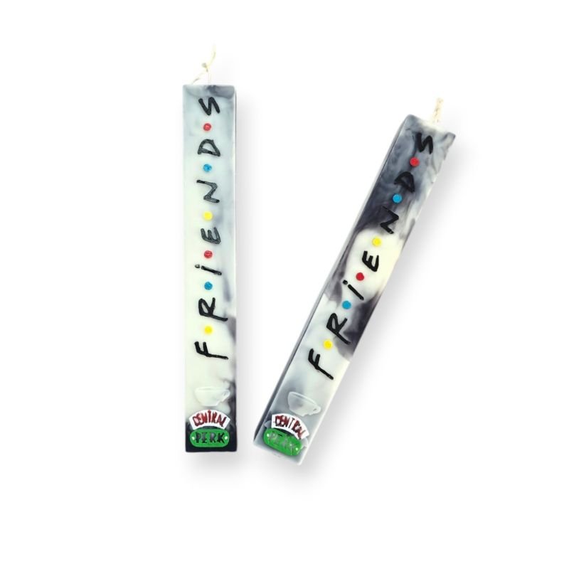 Λαμπάδα Friends με 100% Φυτικό κερί ελαιοκράμβης με βαμβακερό φυτίλι, σε χρώμα λευκό/μαύρο και άρωμα Spring Blossom, ζωγραφισμένη στο χέρι.