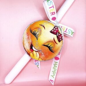 Λαμπάδα με emoji σε ξύλινο σουβέρ. Διάλεξε οποιοδήποτε EMOJI σε εκφράζει ή δώρισε το EMOJI που χαρακτηρίζει τους φίλους σου κατόπιν συνεννόησης. (1:Θυμωμένος 2:Χαριτωμένη 3: Κλείσιμο ματιού 4: Τρεις καρδούλες 5: Δύο καρδούλες)