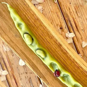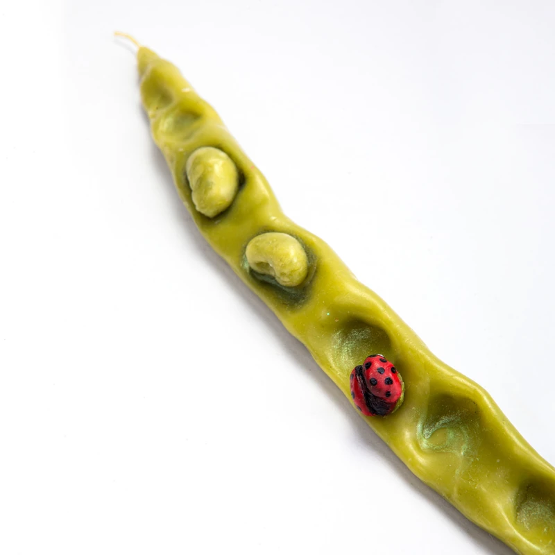 Λαμπάδα σε σχήμα και χρώμα φασολιού από αγνό μελισσοκέρι με λεπτομέρεια μια πασχαλίτσα. Ένα διασκεδαστικό κερί σίγουρα για όσους διαθέτουν χιούμορ ανεξαρτήτου ηλικίας και φύλου!