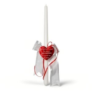 Λευκή λαμπάδα (34 εκ.) για τη γιαγιά με καρτελάκι σε σχήμα καρδιάς. Γράψτε το δικό σας μήνυμα και δημιουργήστε μοναδική προσωποποιημένη λαμπάδα για τη γιαγιά. Αποστέλλεται σε κουτί με χαρούμενη ξεχωριστή διακόσμηση.