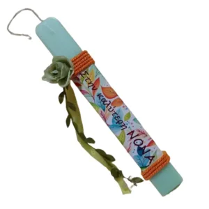 Λαμπάδα ” Στην καλύτερη ΝΟΝΑ “με υφασμάτινο λουλούδι . Το κερί είναι πλακέ σε βεραμάν χρώμα ( 25 χ 3 εκ. ).