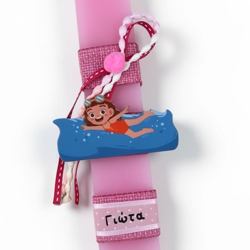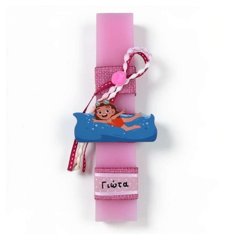 Λαμπάδα Κολυμβήτρια ροζ με όνομα