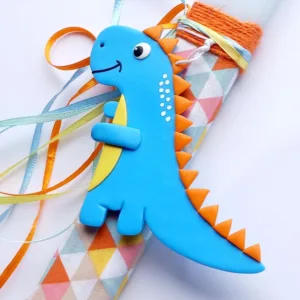 Οι δεινόσαυροι, αυτά τα υπέροχα πλάσματα που καλύπτονται από μυστήριο, αποτελούν ένα από τα πιο αγαπημένα θέματα των μικρών αγοριών. Εδώ έχουμε ένα χαμογελαστό γαλάζιο δεινοσαυράκι (μην μας ρωτήσετε ποιο είδος είναι).