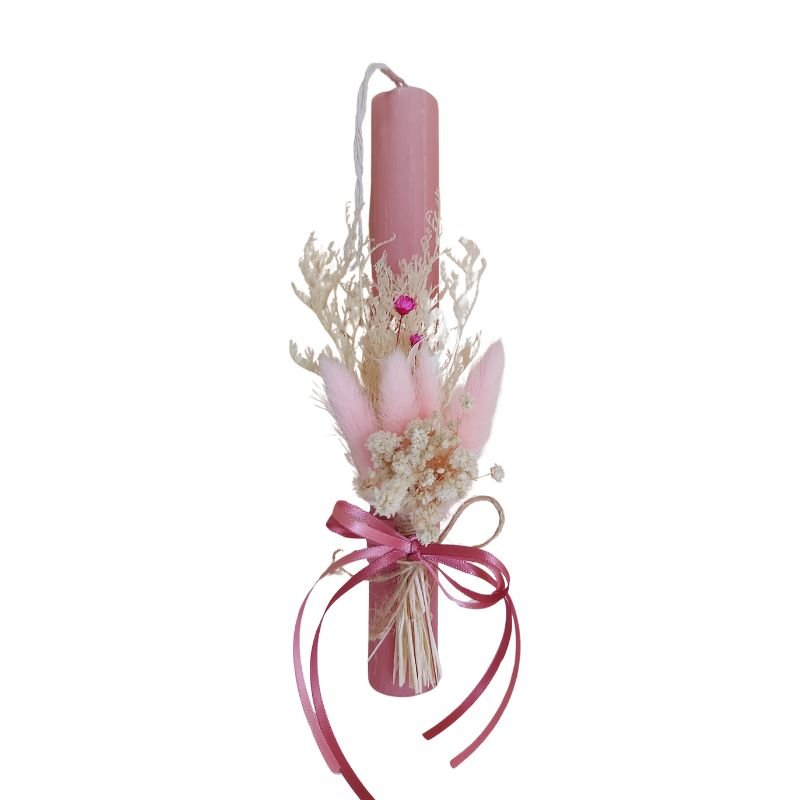 Λαμπάδα αρωματική στρογγυλή σαγρέ 2οεκ. σε χρώμα σάπιο μήλο με φυσικά αποξηραμένα λουλούδια σε μπεζ και ροζ χρώματα!