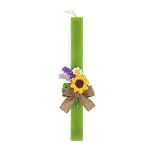 Λαμπάδα με χειροποίητα πλεκτά λουλούδια.