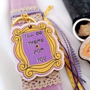 Αρωματική Λαμπάδα Φιλαράκια, από την αγαπημένη σειρά τα Φιλαράκια με την Iconic μωβ πόρτα με υπέροχα υλικά και κορδέλες, που θα κλέψει τις εντυπώσεις!