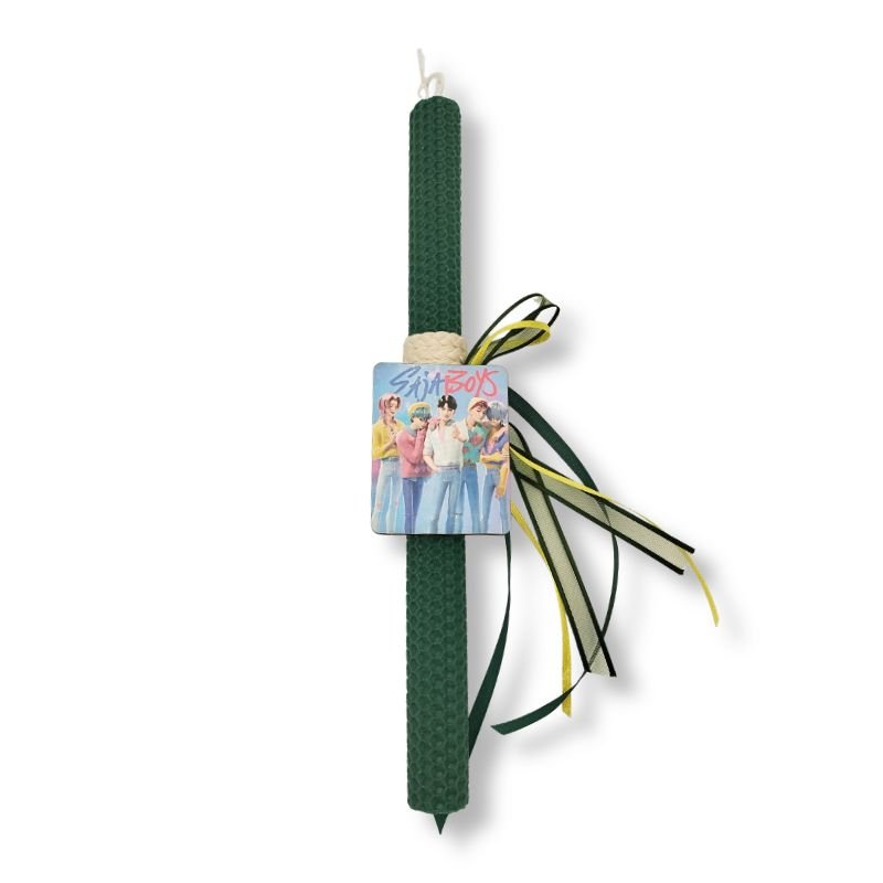 Λαμπάδα από μελισσοκέρι με ξύλινη φιγούρα Saja boys.